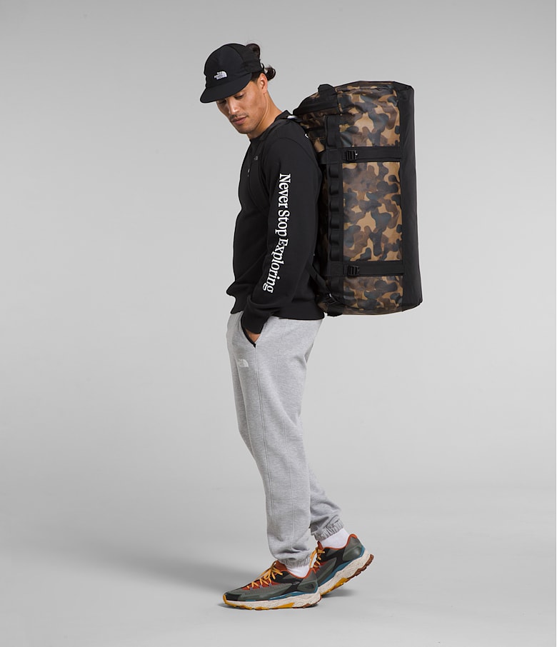 Extreme environments call for rugged durability. That’s why we built the Base Camp Duffel. Trusted on the world’s toughest terrain since ’86, this bag was created as a nearly indestructible storage solution for Himalayan expeditions. Today it remains an instantly recognizable symbol of craggy innovation—its legendary stories are told in scuff marks. Reborn as the ultimate 95-liter travel bag, our burly Base Camp fabric is water and tear-resistant for protection against rough handling and even rougher weather. This is the last bag you need. This is an icon.