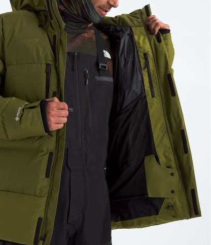 To update our Men’s Corefire Down Jacket, we’ve added a fully windproof, 100% recycled GORE-TEX WINDSTOPPER® shell for added on-mountain protection. To maximize performance and improve warmth-to-weight ratio, we strategically insulated the main body with 550-fill down, while the side panels, hood and underarms feature synthetic Heatseeker™ Eco Pro. With plenty of secure-zip pockets, underarm venting and a snap-away powder skirt, you’ll be set from first chair to last.