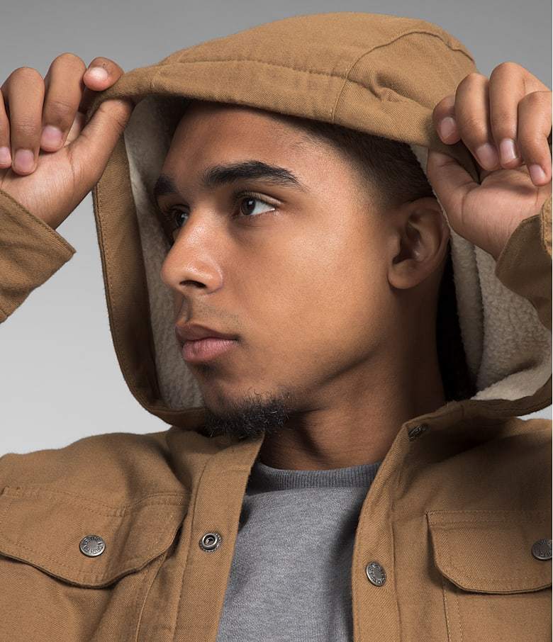 - Sherpa-fleece-lined, three-piece hood