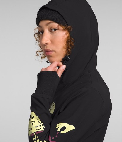 The relaxed-fit Women’s Tekno Pullover Hoodie features a secure-zip kangaroo pocket and 91% recycled, water-repellent fabric that helps you stay dry and warm on and off the mountain.